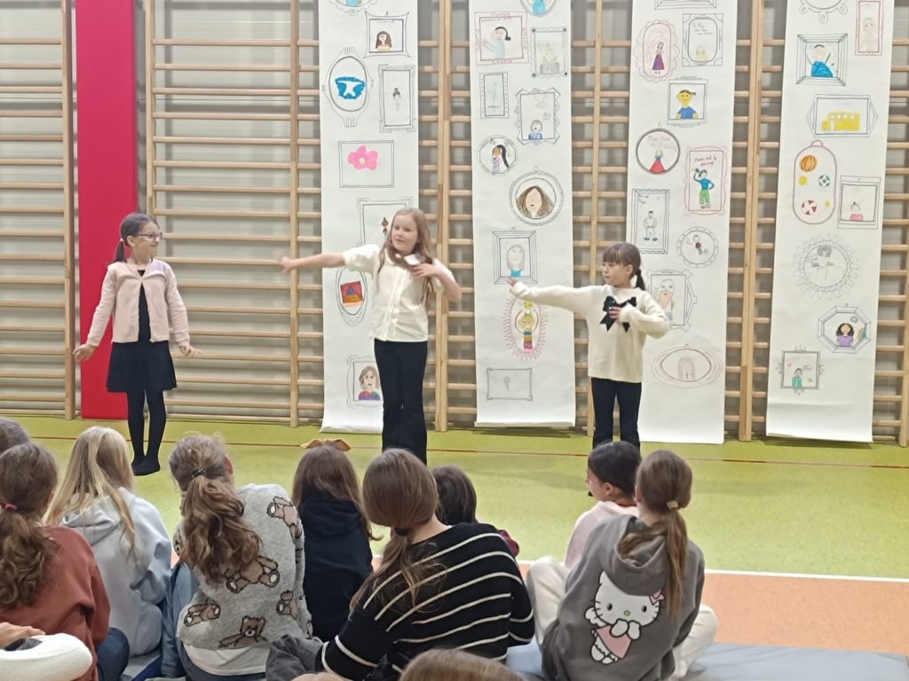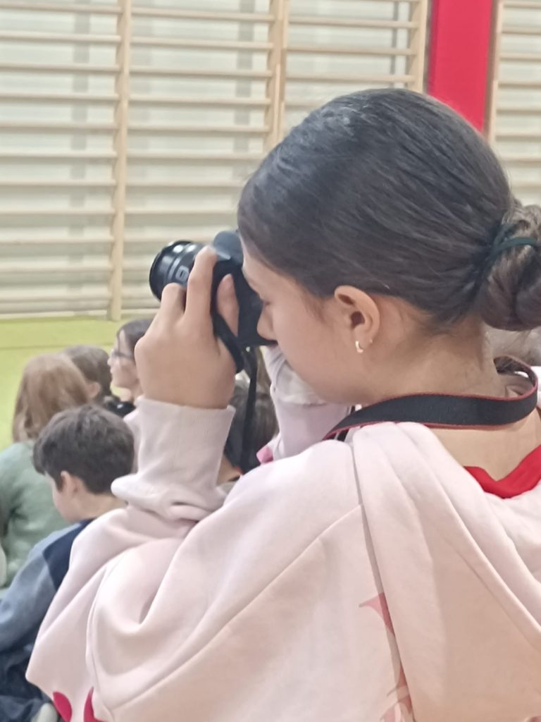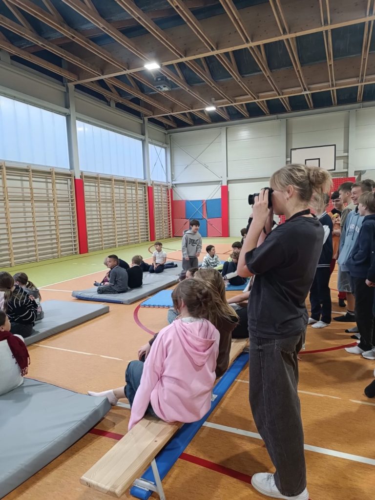 W ramach projektu „Laboratoria Przyszłości” uczniowie wykorzystali aparat fotograficzny do wykonania fotorelacji z obchodów Dnia Edukacji Narodowej. Pod opieką nauczyciela dokumentowali najważniejsze momenty uroczystości, takie jak występy artystyczne, wręczenie nagród i podziękowań dla nauczycieli. Dzięki temu uczniowie rozwijali swoje umiejętności fotograficzne, uczyli się obsługi sprzętu oraz zasad tworzenia reportażu fotograficznego.